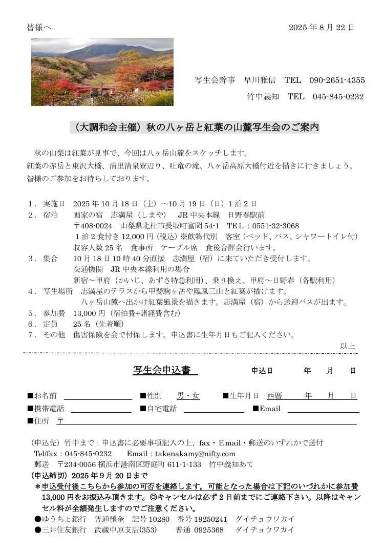 ●大調和会・秋のスケッチ旅行・開催案内