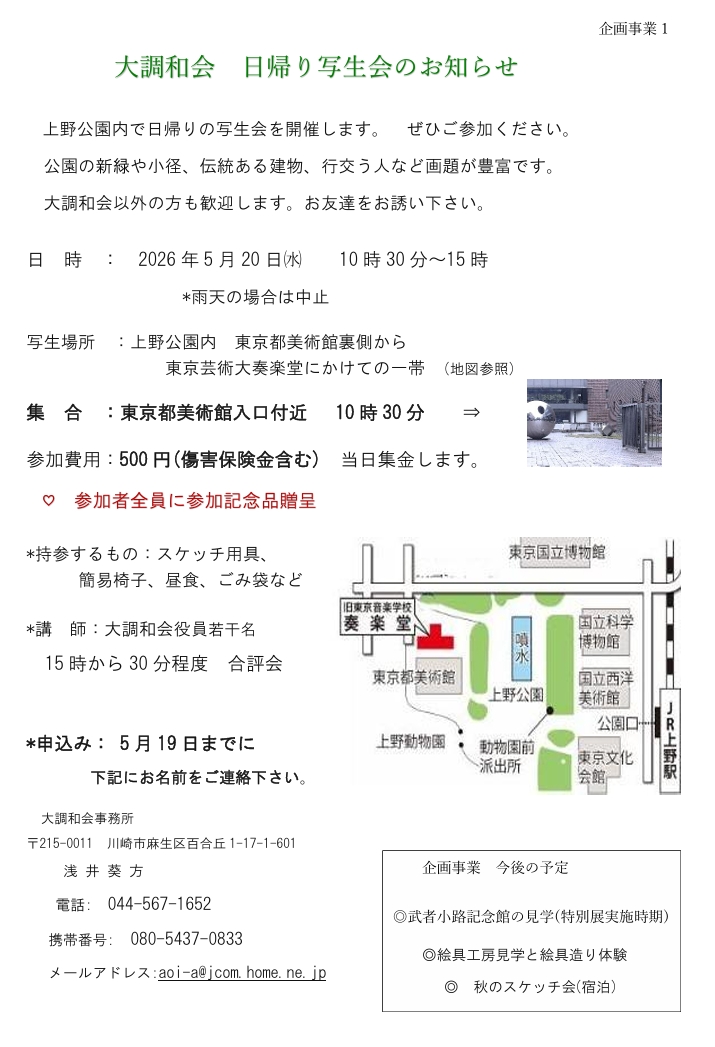 ●日帰り写生会のお知らせ